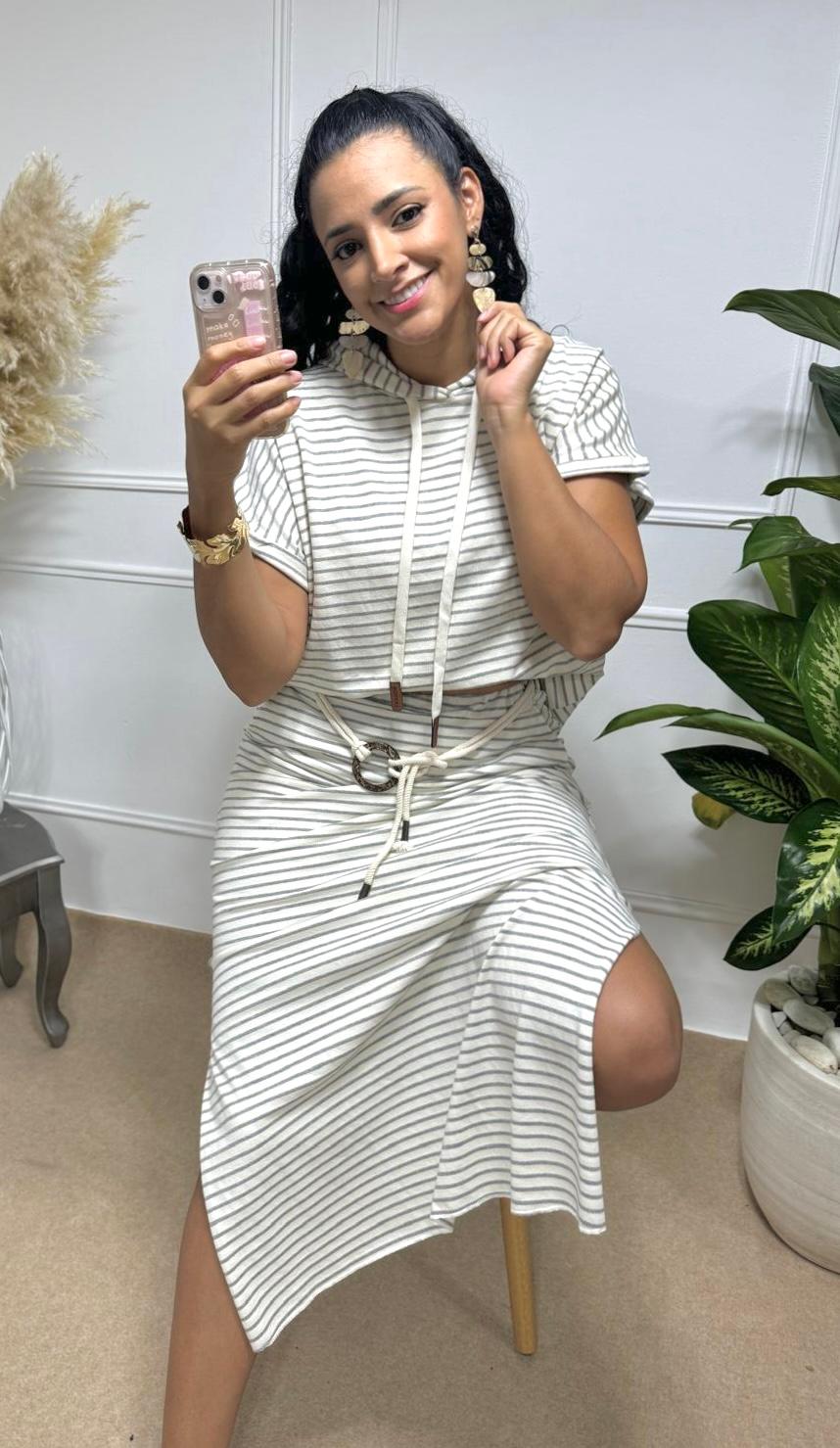 Este conjunto para dama incluye una falda midi elegante y femenina, junto a un buso a rayas moderno y versátil 🖤🤍. La mezcla perfecta entre lo clásico y lo trendy. Ideal para dĂas casuales con mucho estilo o salidas especiales donde quieras destacar.