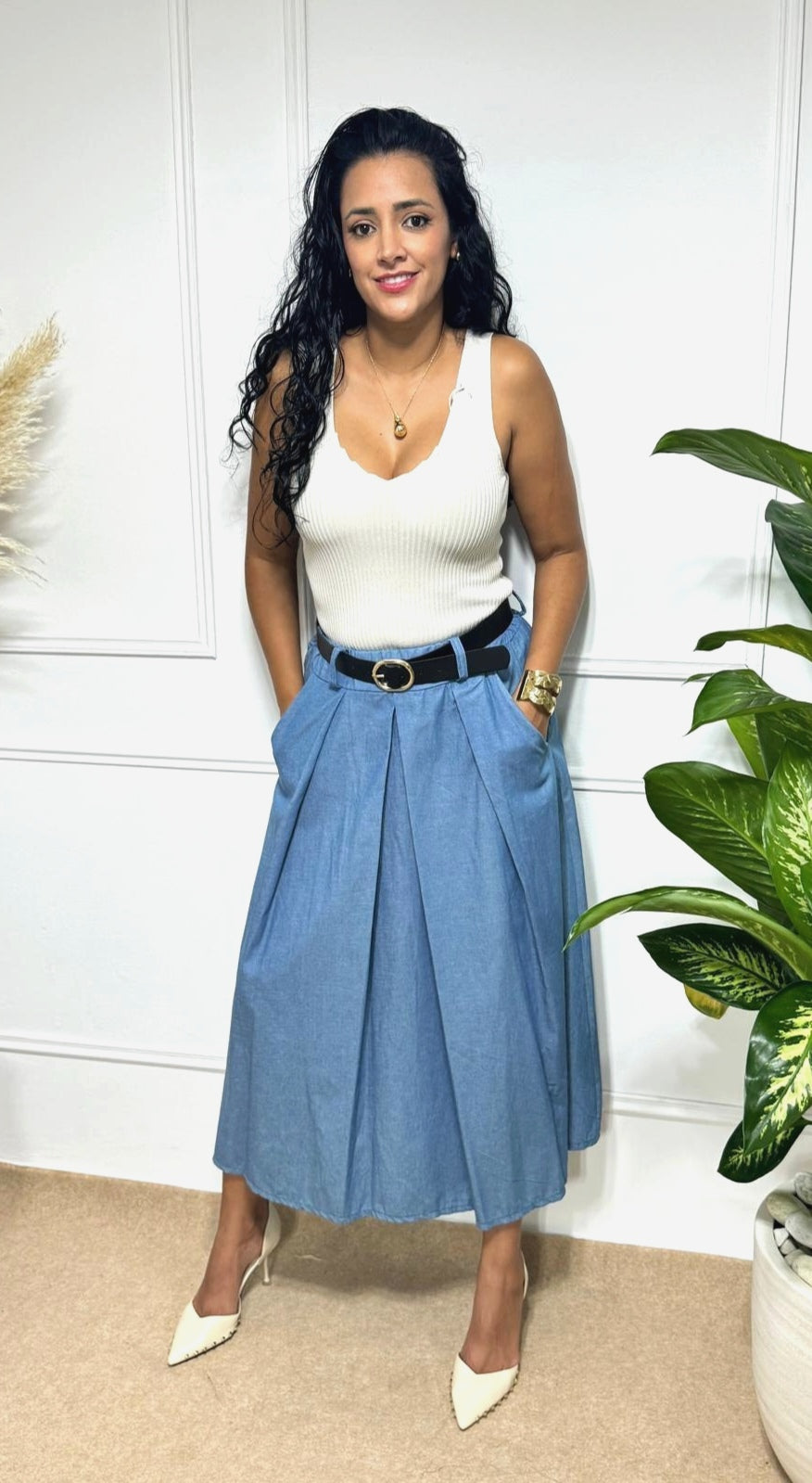 Perfecta para climas cálidos, paseos relajados o looks boho con estilo propio. Combínala con tops blancos, sandalias o accesorios artesanales y ¡destaca sin esfuerzo! Incluye un elegante cinturón negro que resalta la cintura y le da un toque moderno y sofisticado