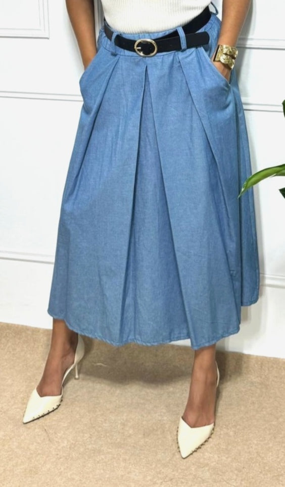 Fresca, cómoda y con mucha onda. Esta falda larga está confeccionada en suave algodón, con un tono que imita al índigo pero sin ser mezclilla. Ideal para quienes aman ese look denim pero prefieren la ligereza y suavidad del algodón.
